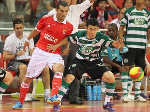 Já perto do final da primeira parte, marcada pelas expulsões do guardião benfiquista Bebé e do "leão" Divanei, o Sporting reduziu para 3-1, com golo de Marcelinho.